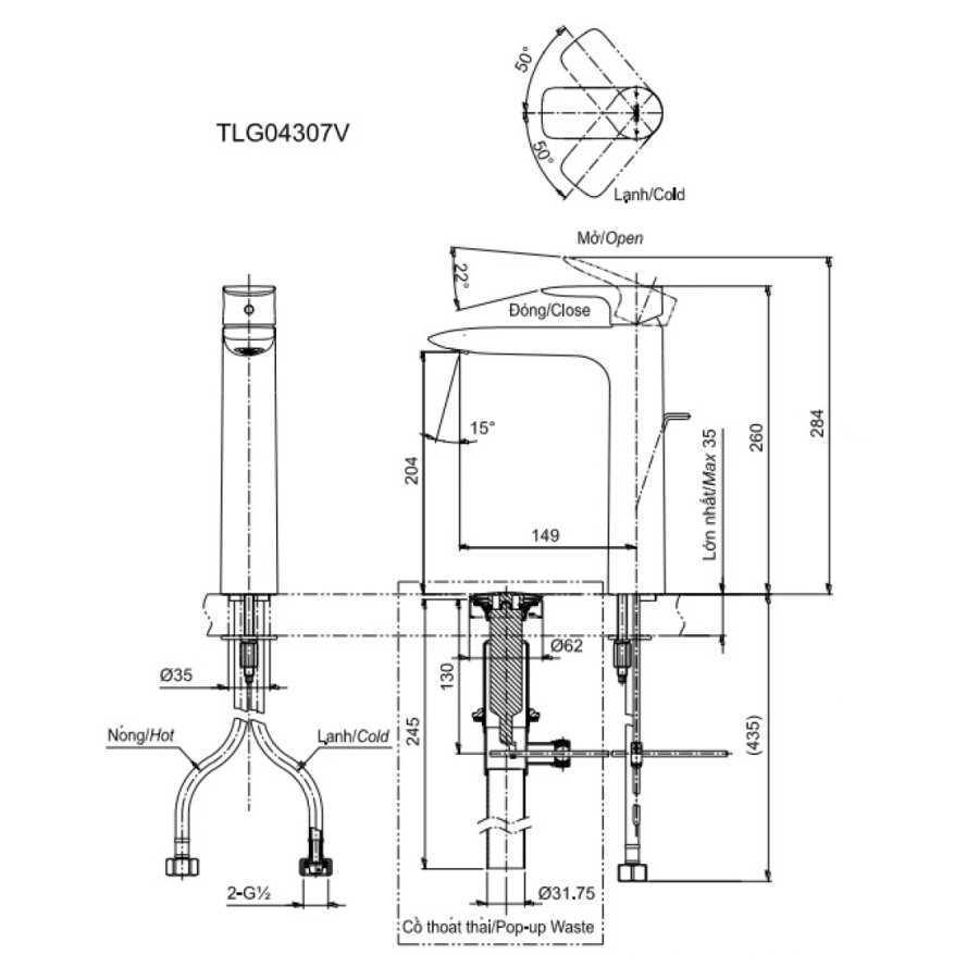 Áp lực nước: 0.05MPa ~ 0.75MPa