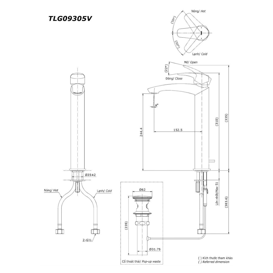Bản vẽ Vòi Lavabo Nóng Lạnh TOTO TLG09305V Cổ Cao 2 chế độ