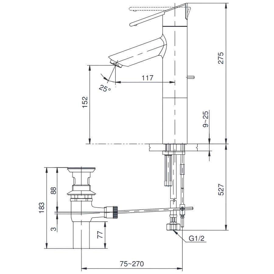 Bản vẽ Vòi Lavabo Nóng Lạnh TOTO TS240AX 2 chế độ