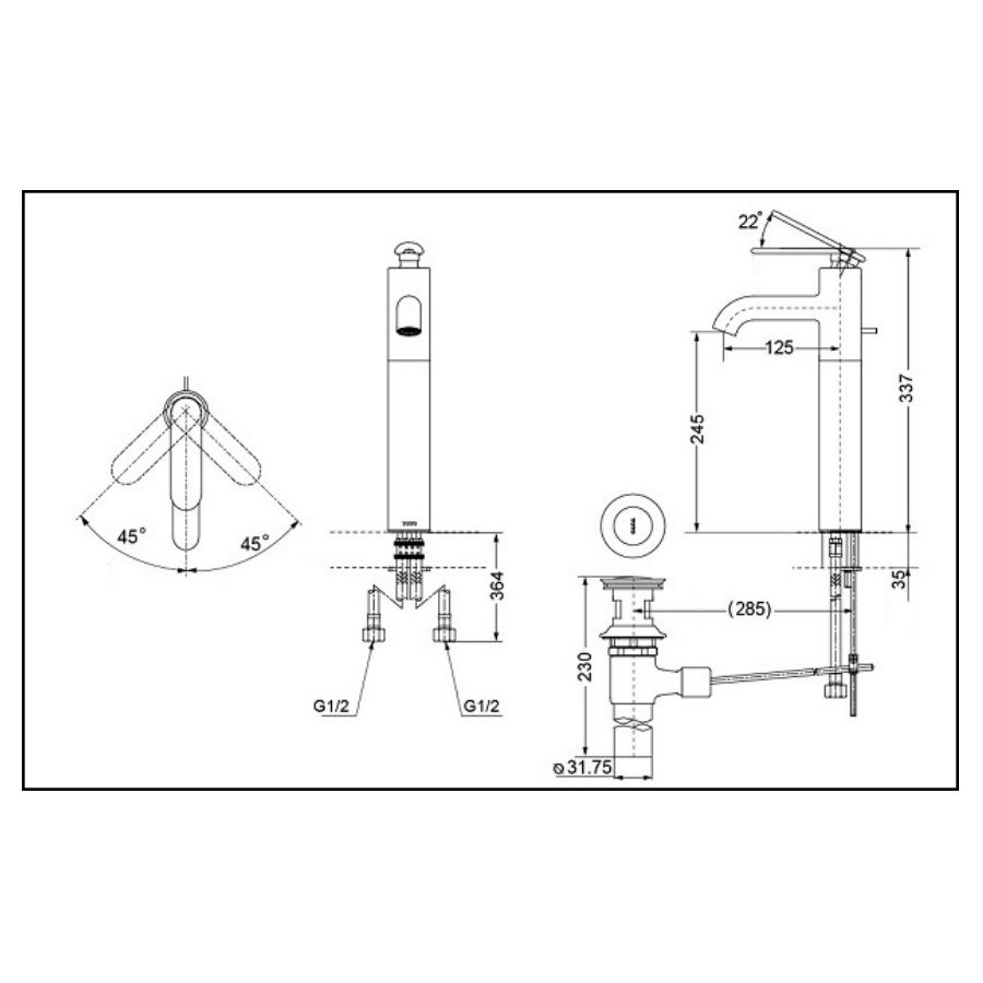 Bản vẽ Vòi Lavabo Nóng Lạnh TOTO TS240AY 2 chê độ
