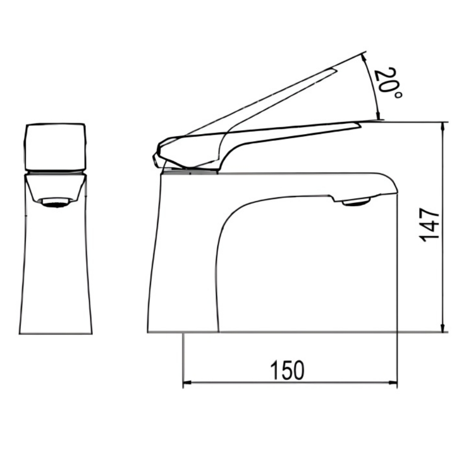 Bản vẽ Vòi Lavabo Nóng Lạnh Viglacera P.51.351 Platinum