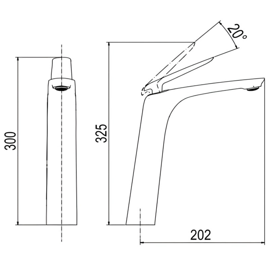 Kích thước tối ưu: Với kích thước W50 x D202 x H300 mm, vòi có tỷ lệ cân đối, dễ dàng kết hợp với nhiều loại chậu lavabo khác nhau, mang lại sự tiện lợi trong lắp đặt và sử dụng hàng ngày.