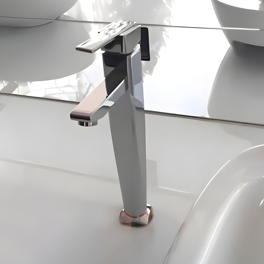 Thiết kế cổ cao, sang trọng: Vòi VG126 sở hữu kiểu dáng thanh thoát, hiện đại với phần cổ cao, rất phù hợp cho các mẫu lavabo đặt bàn hoặc các thiết kế chậu lớn, tạo nên sự cân đối và thẩm mỹ cho không gian.