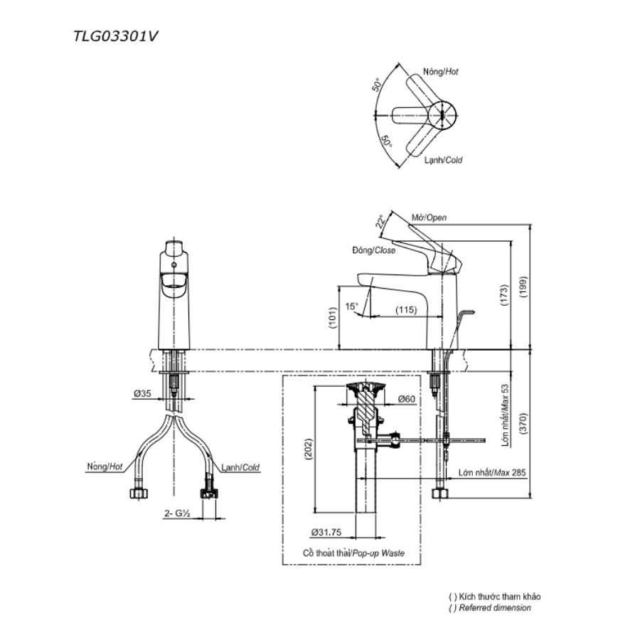 Lưu ý: Bao gồm bộ xả, không gồm ống thải chữ P.