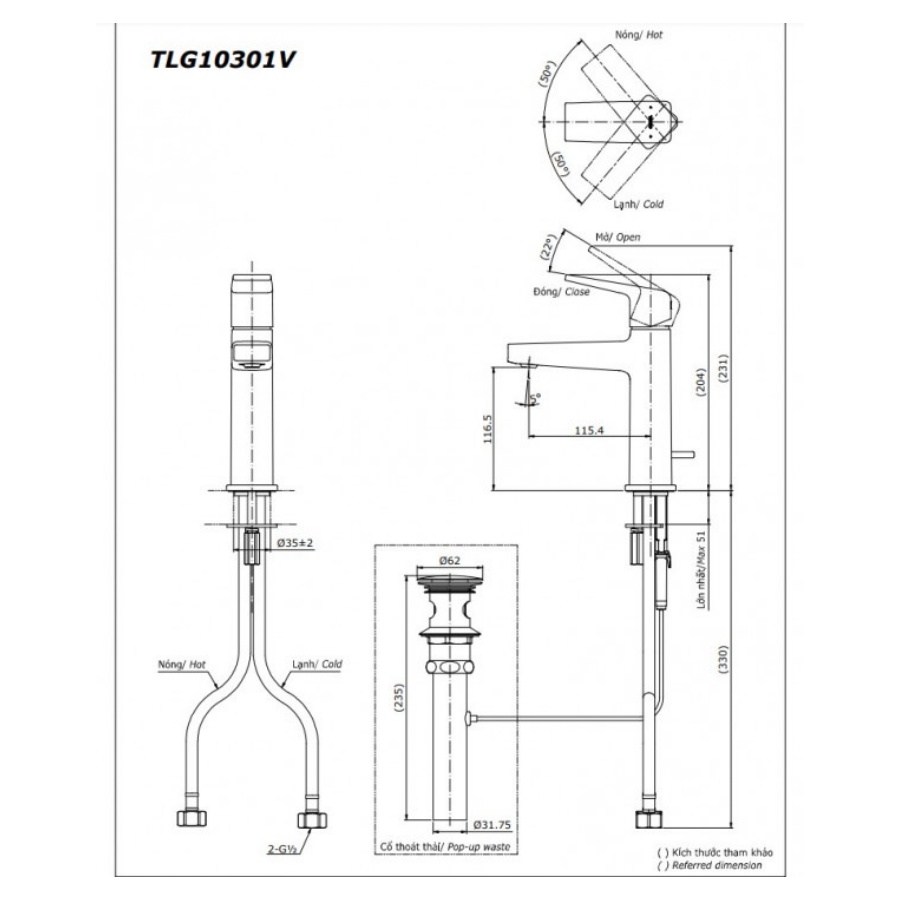 Bản vẽ kỹ thuật vòi nước TOTO nóng lạnh TLG10301V