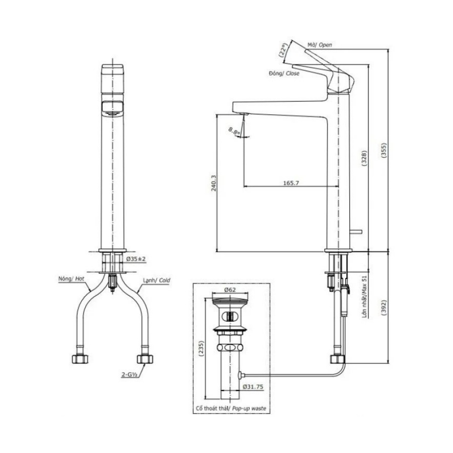 Áp lực nước: 0.05MPa ~ 0.75MPa
