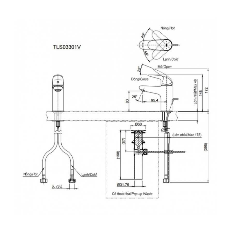 Bản vẽ kỹ thuật vòi nước TOTO TLS03301V nóng lạnh