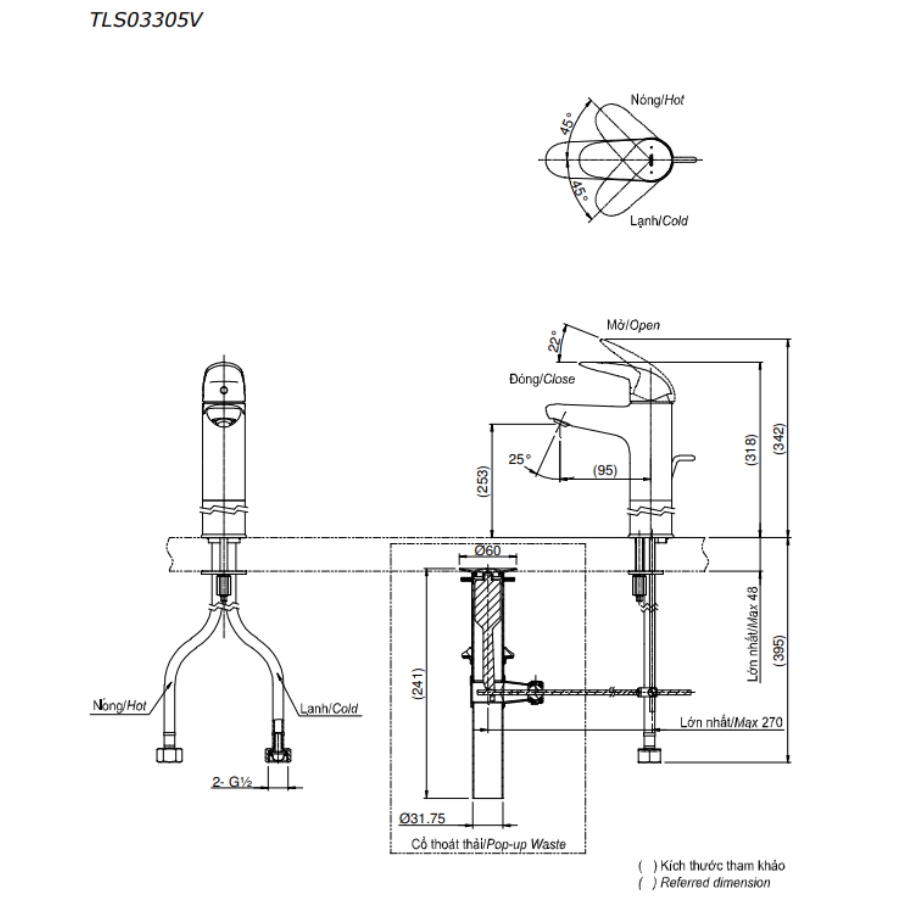 Bản vẽ Vòi Lavabo TOTO TLS03305V Nóng Lạnh Cổ Cao