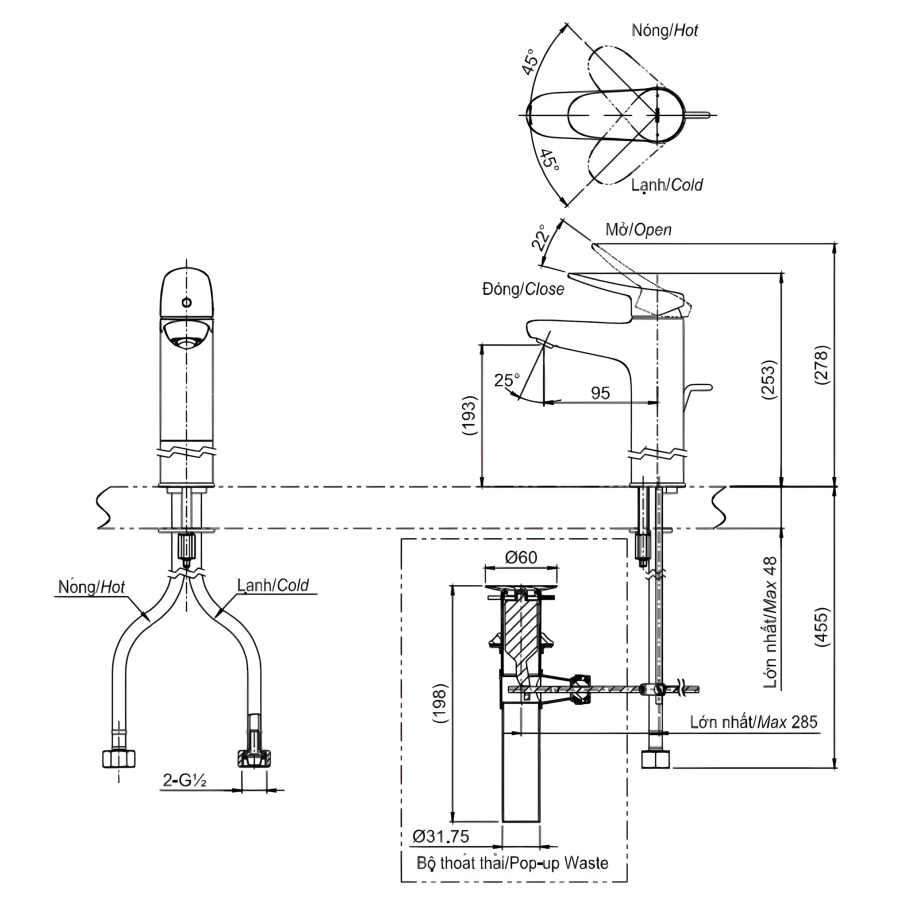 Áp lực nước: 0.05MPa ~ 0.75MPa