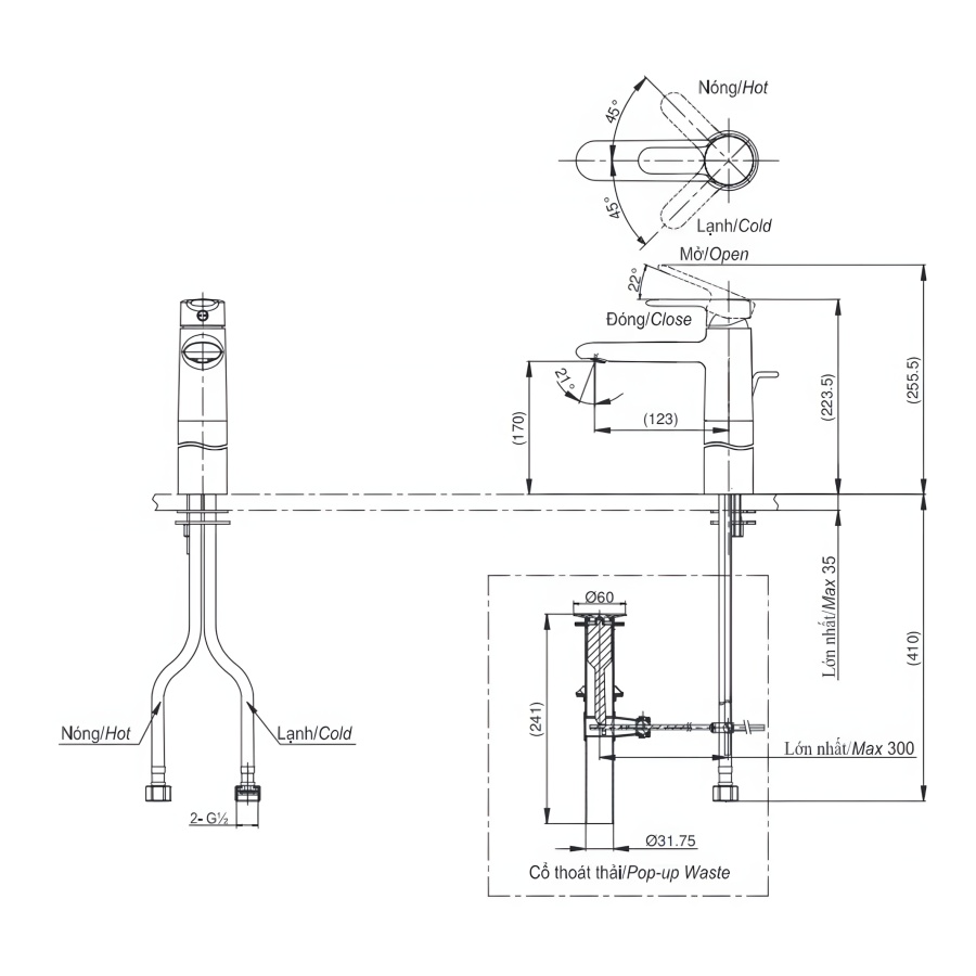 Áp lực nước: 0.05MPa ~ 0.75MPa