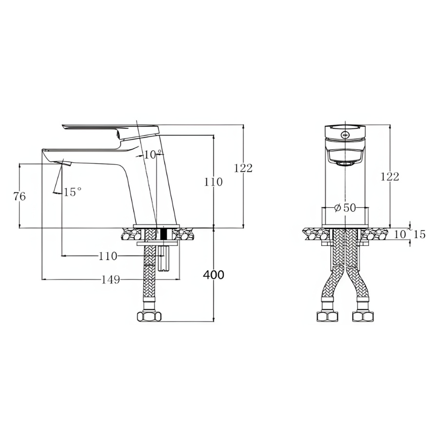 Bản vẽ Vòi Nóng Lạnh Lavabo CAESAR B120CU Bộ Xả Nhấn