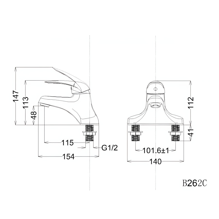 Bản vẽ Vòi Nóng Lạnh Lavabo CAESAR B260CU Bộ Xả Nhấn HCM
