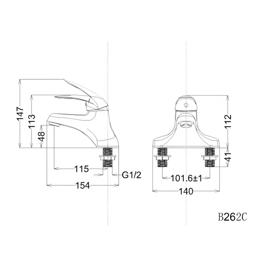 Bản vẽ Vòi Nóng Lạnh Lavabo CAESAR B262CU Bộ Xả Nhấn Nhựa