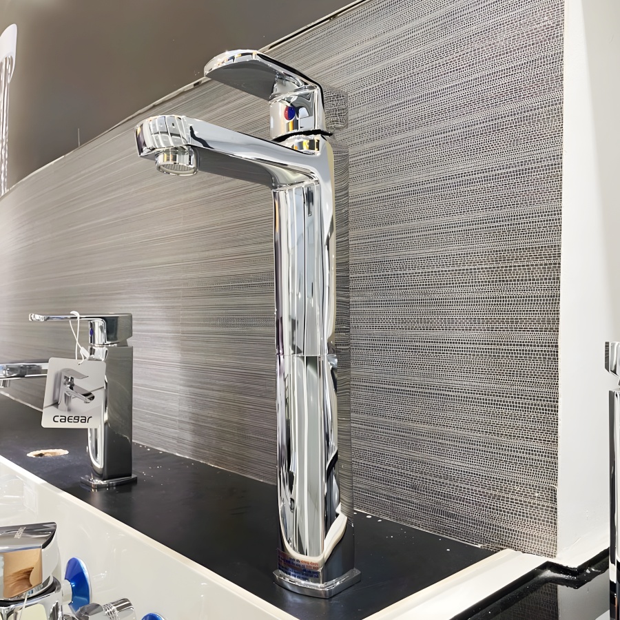 Thiết kế cổ cao cho chậu đặt bàn: Vòi Caesar B551CU có kiểu dáng gật gù thân cao, được thiết kế đặc biệt để lắp đặt cùng các loại chậu lavabo đặt trên bàn, tạo nên điểm nhấn tinh tế và hài hòa cho khu vực lavabo.