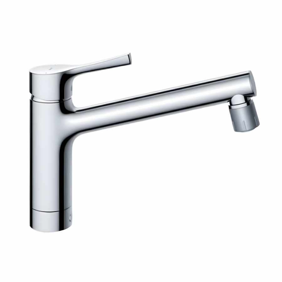 Vòi bếp TOTO DK307ARR: Nóng lạnh, thân xoay. Đồng mạ Ni-Cr chống ăn mòn, tay gạt đơn. Thiết kế đơn giản, bền bỉ, phù hợp với mọi căn bếp.