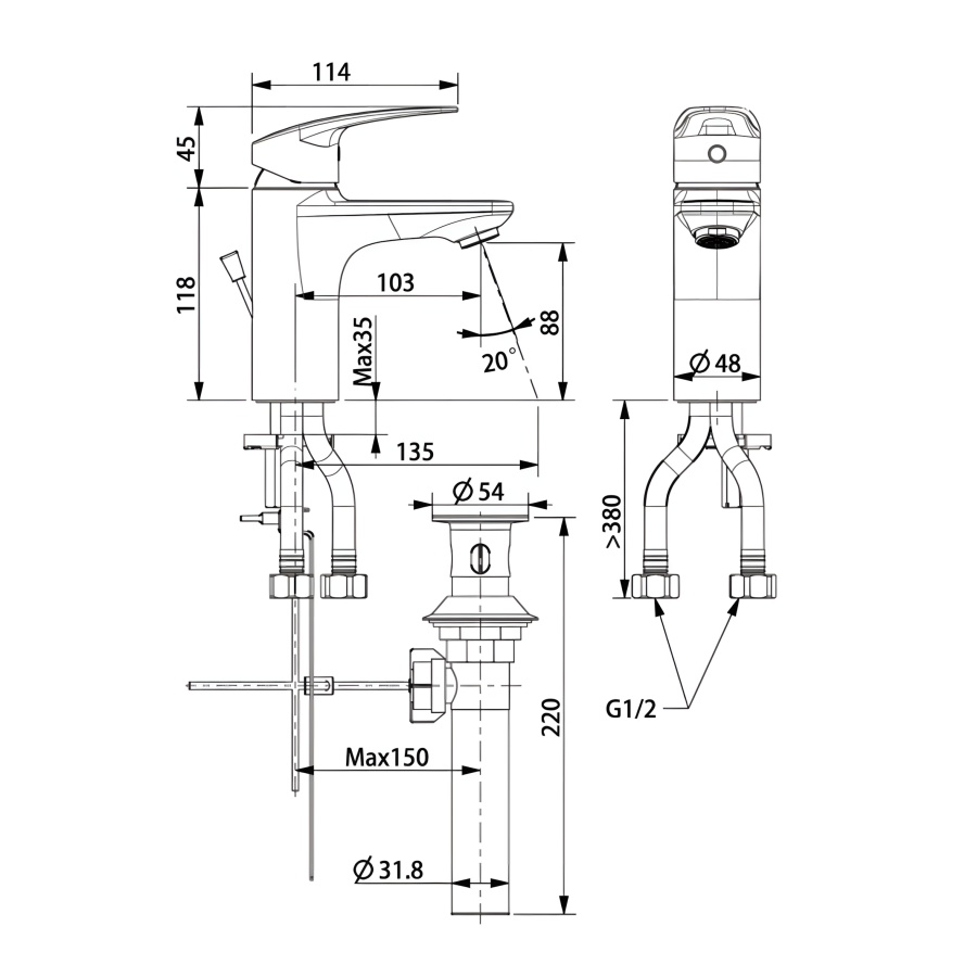 Bản vẽ Vòi Rửa Lavabo American Standard WF-0901 (WF0901) Milano Nóng Lạnh