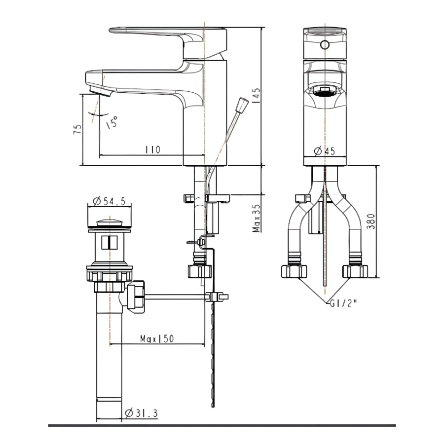 Áp lực nước ổn định: Vòi hoạt động hiệu quả với áp lực nước từ 0.05MPa đến 0.75MPa, đảm bảo dòng nước chảy ổn định và mạnh mẽ.