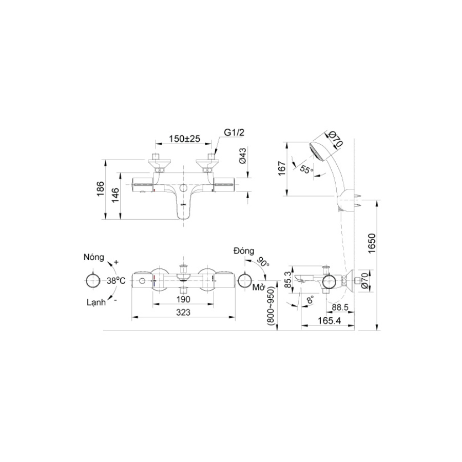 Bản vẽ Vòi Sen Tắm Inax BFV-3413T-8C (BFV3413T8C) Nhiệt Độ Cao Cấp